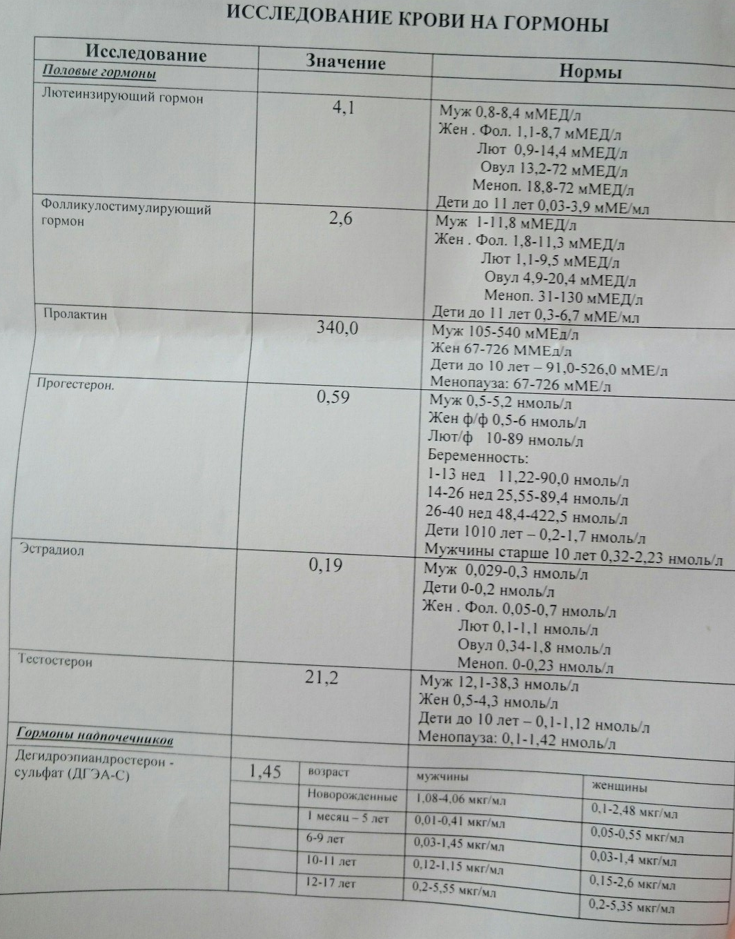 нормальные анализы