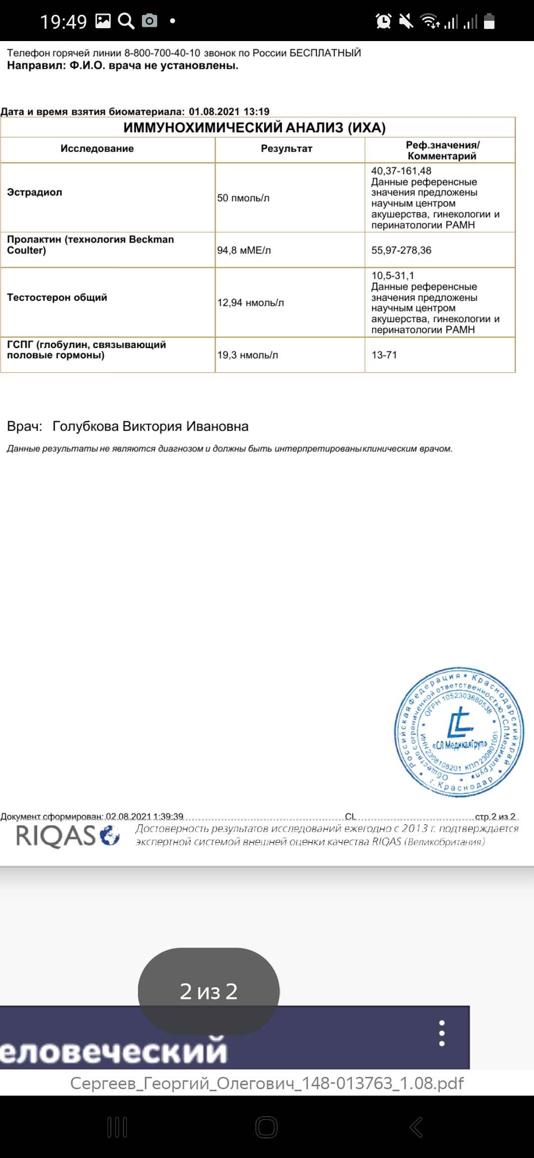 Добрый день всем ,ребят помогите пожалуйста ,подскажите что да как.33 года решил курсануть ,с последнего курса прошло более трех лет. Сдал анализы ,тест очень низкий или мне так кажется?посмотрите и другие результаты ,заранее спасибо...Screenshot_20210805-194854_Browser.jpg Screenshot_20210805-194939_Browser.jpg