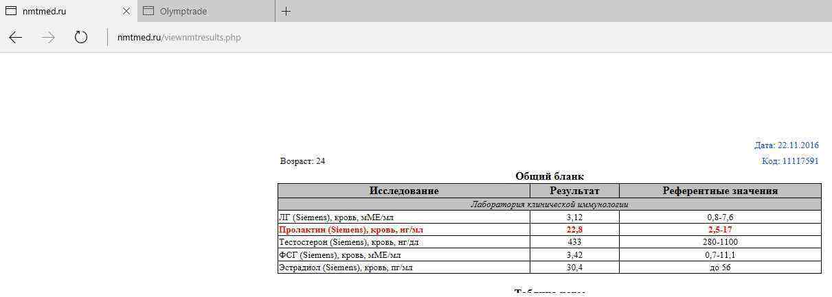 Пролактин - 308.1 мЕд/л (86 - 324).