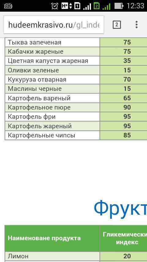 ок, Гликемический индекс