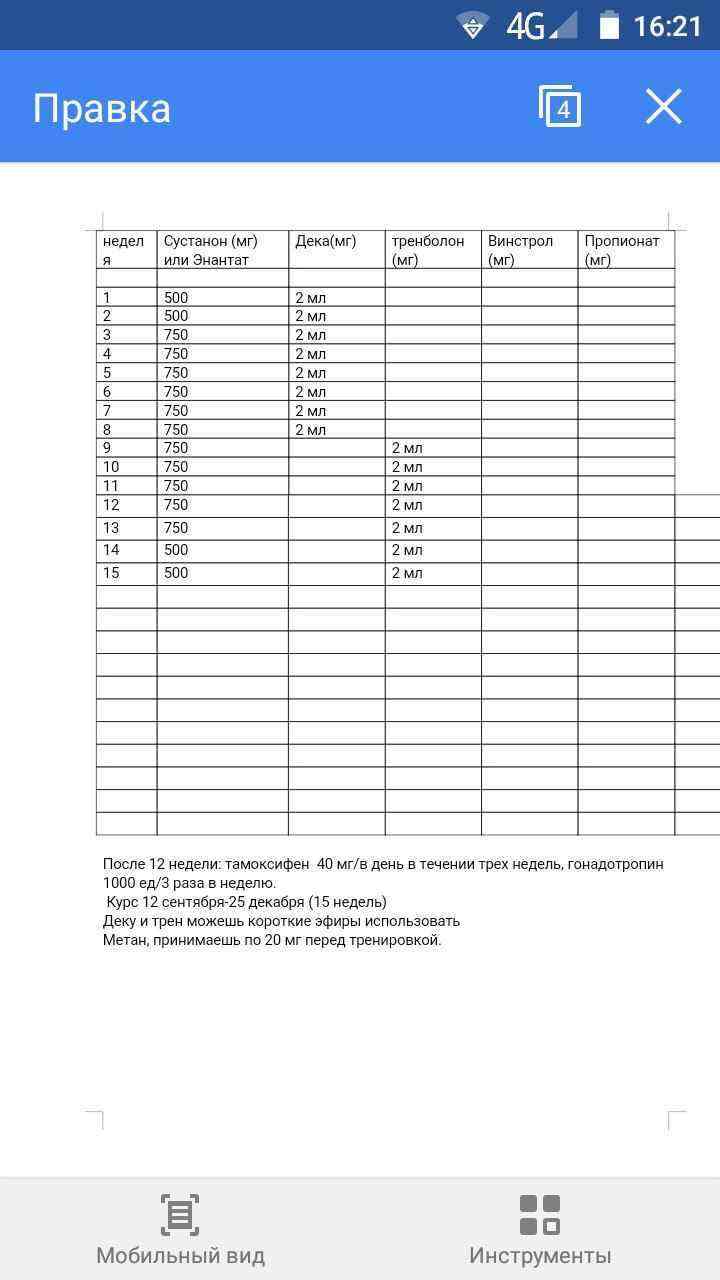 - Дальше на 6 недель дека 250, энка 500 и метан 30